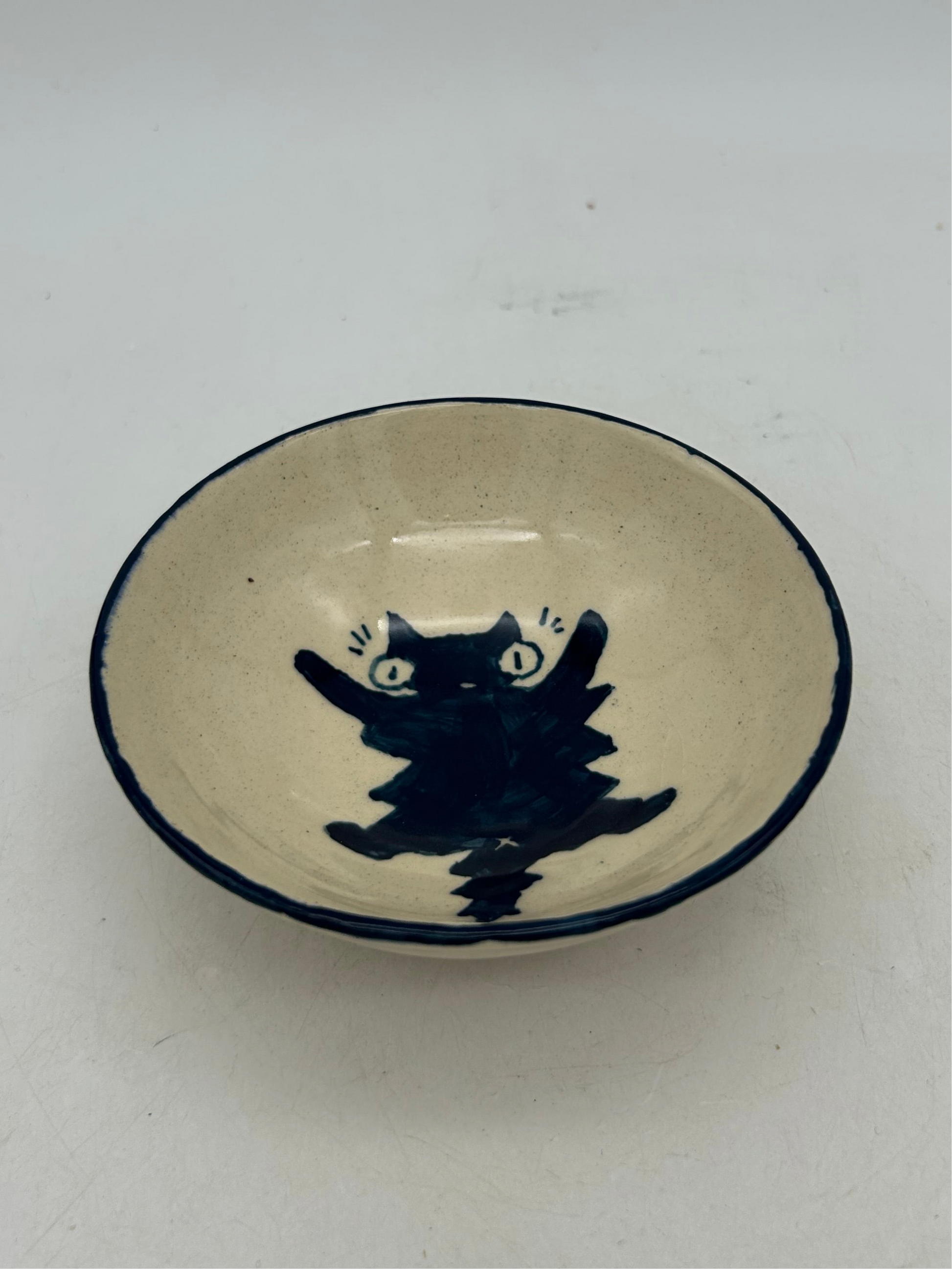 Thrown on the wheel and hand painted by Sophia! This small bowl is perfect for snacks for you or your feline companion. =^-^=
